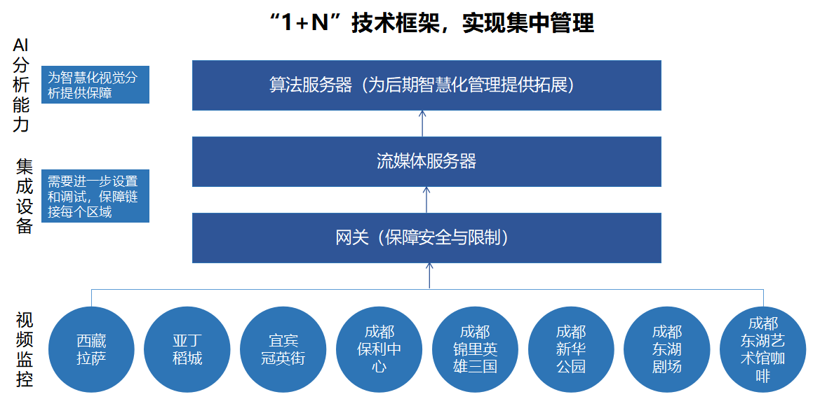在解决“统分”的关键是“流媒体服务器”:可以将各地的监控设备、NVR等进行串联,具有高性能、高拓展性、高兼容性的综合优点。 在解决智慧化方面是“算法服务器”:通过“GPU”为主导的算力,加上百种AI视觉算法,来实现“摄像头”的自主决策与预警,实现平台的“智慧化”。 在强化安全性方面,采取双保障:通过安全网关与网络专线,加强数据传输与访问的私密,能大大提高平台的整体安全性。 营造司网,践行智慧AI赋能现代化治理。
